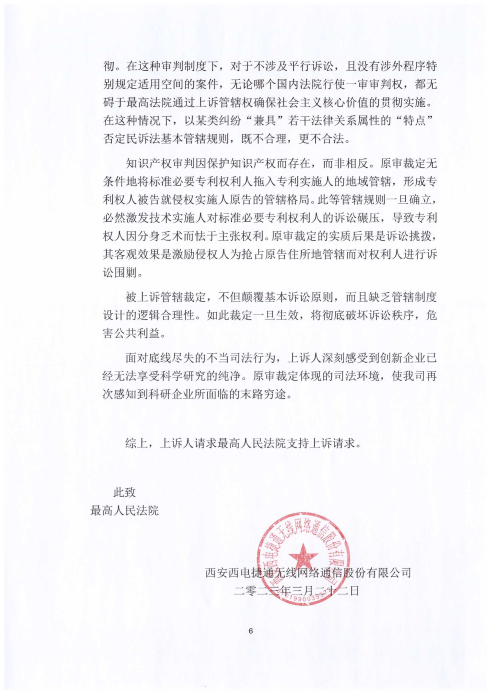 ​※基于西安西电捷通无线网络通信股份有限公司合规指南,公开以下涉西电捷通标准必要专利的判决、裁定等法律文书。