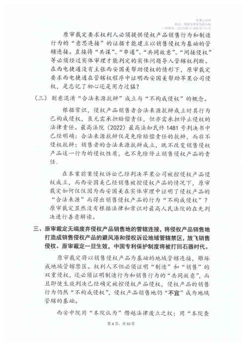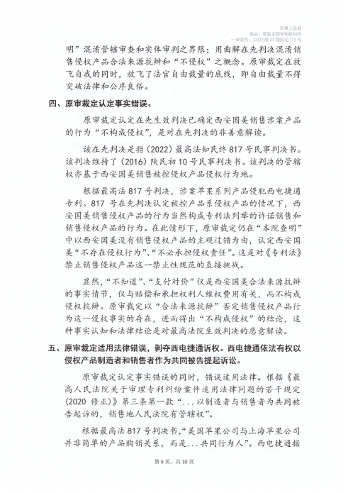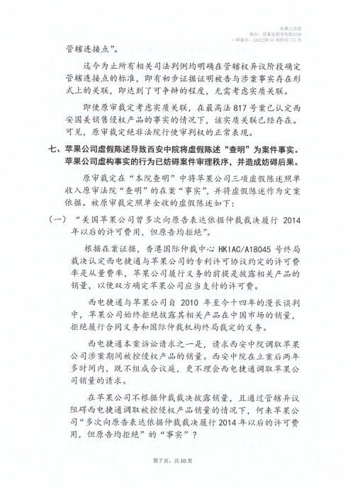 点击阅读 西电捷通诉苹果标准必要专利侵权案司法文书(2022)陕01知民初775号、(2024)最高法知民辖终141号